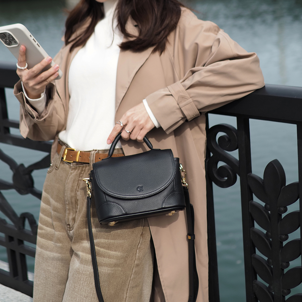 ใบสะพายเล็กดีเทลน่ารัก ออกแบบช่องใช้งานใส่บัตร-ธนบัตรในตัวได้ พร้อมที่เกี่ยวกุญแจ ภายในช่องหลักแบ่งเป็น 2 ช่อง จัดเก็บของสะดวก เป็นอีกรุ่นที่ทรง-ออกแบบรายละเอียดมาให้น่ารักมากๆ เบาสบาย-หนังวัวนุ่ม
