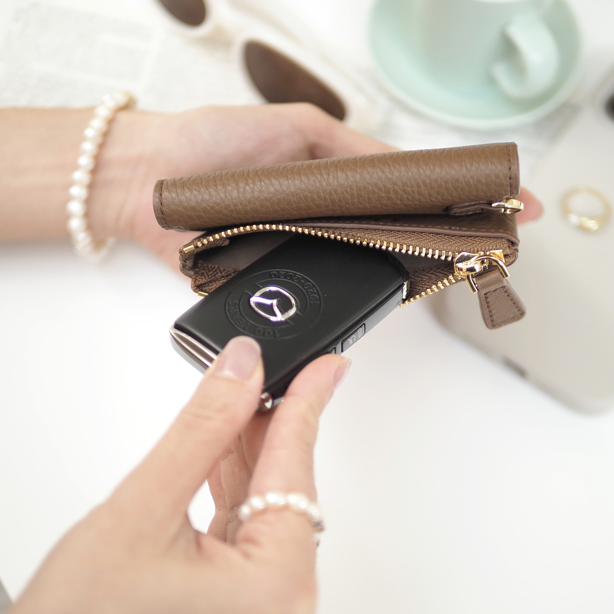 มีห่วงสำหรับเกี่ยวพวงกุญแจ สายคล้องมือ สายคล้องคอของแบรนด์ มีจำหน่ายแยกแมทซ์เพิ่มเพื่อความสะดวกยิ่งขึ้น