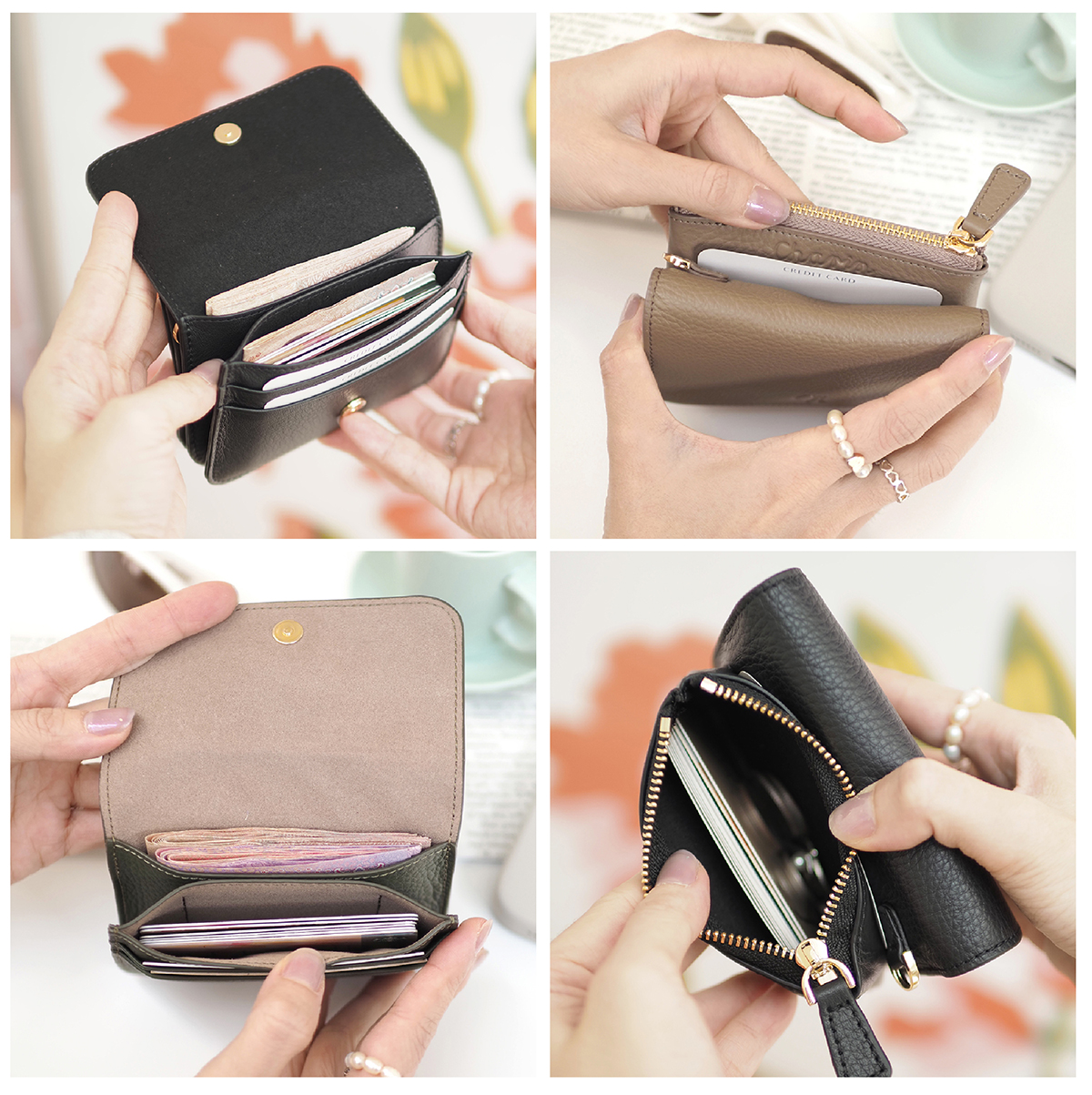 1. ช่องกระเป๋าหน้ามีฝาปิด ด้านในมีช่องหลักใส่บัตรหรือธนบัตร 2 ช่อง และช่องบัตรแยก 2 ช่อง